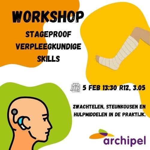 Samen met Archipel organiseren we een workshop waar je al kennis kan maken met verschillende dingen die je kan tegen komen in de zorg. Wat zijn zwachtels, een doff 'n donner en welke hulpmiddelen kun je tegenkomen? Zo sta je al wat steviger in je schoenen omdat je al wat kennis op zak hebt, helpt hopelijk iets tegen de spanning rondom stage lopen en helpt je klaar te stomen voor de stageperiode!